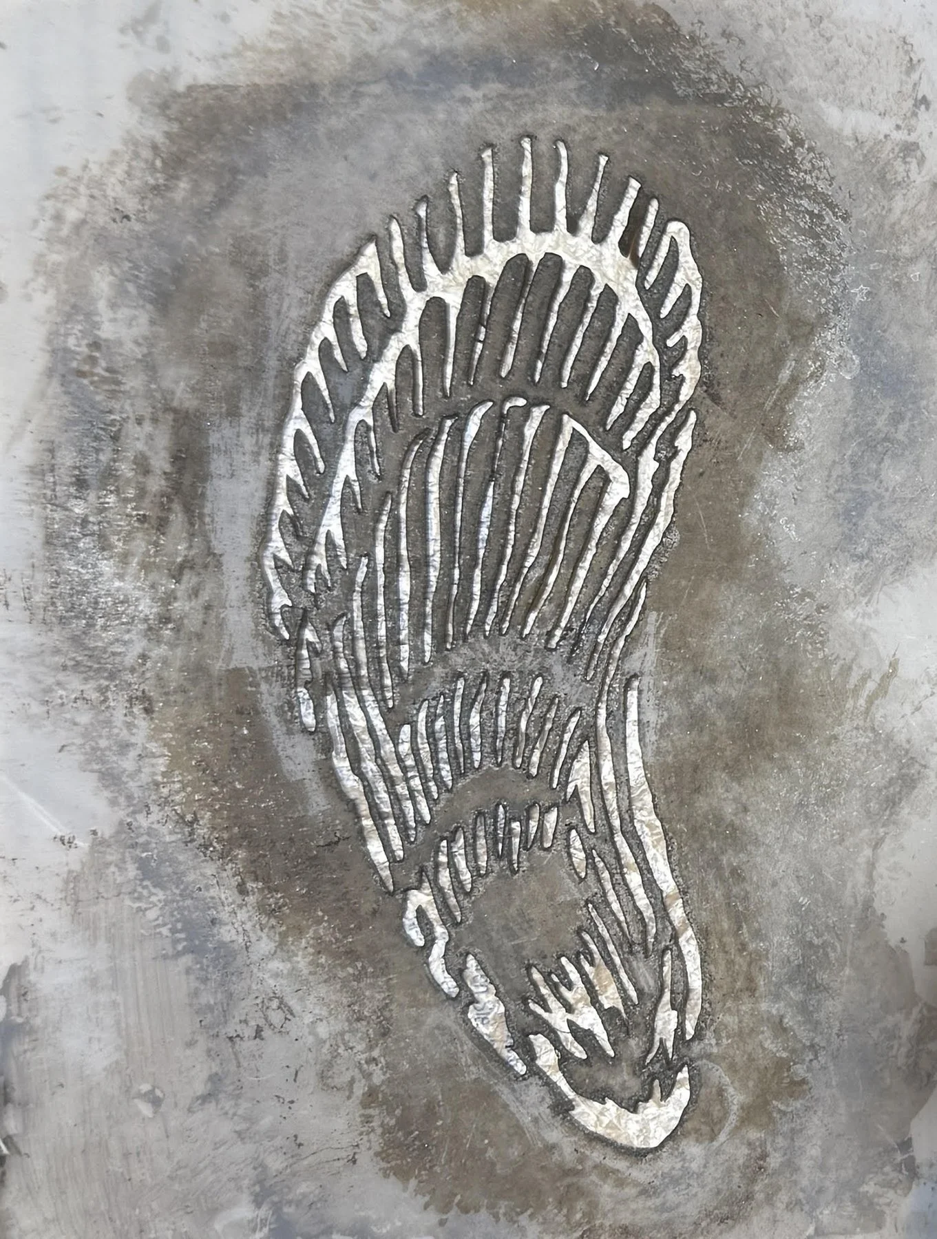 SLUDGE includes works that use the Creek's water and trace amounts of sediment to paint and print with, describing history through water sampling, and embroidering creek-themed imagery onto lab coats. With this iteration, she integrates crafting as another facet of engaging creek-related materials.